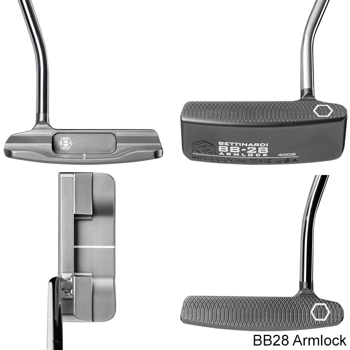 Making its debut in the BB Series line, the BB28 Armlock is offered as one of the most forgiving models in our Bettinardi putter range. The near-face-balanced wide-body blade features subtle, refined contours for the player looking for a professional-level model with a durable and sleek Graphite Gray PVD finish that accentuates all milling marks. As the creators of Armlock technology, our BB28 features 5 degrees of loft milled directly into the face of the head, which allows for optimal set-up after the grip of the club is pressed into your left forearm.